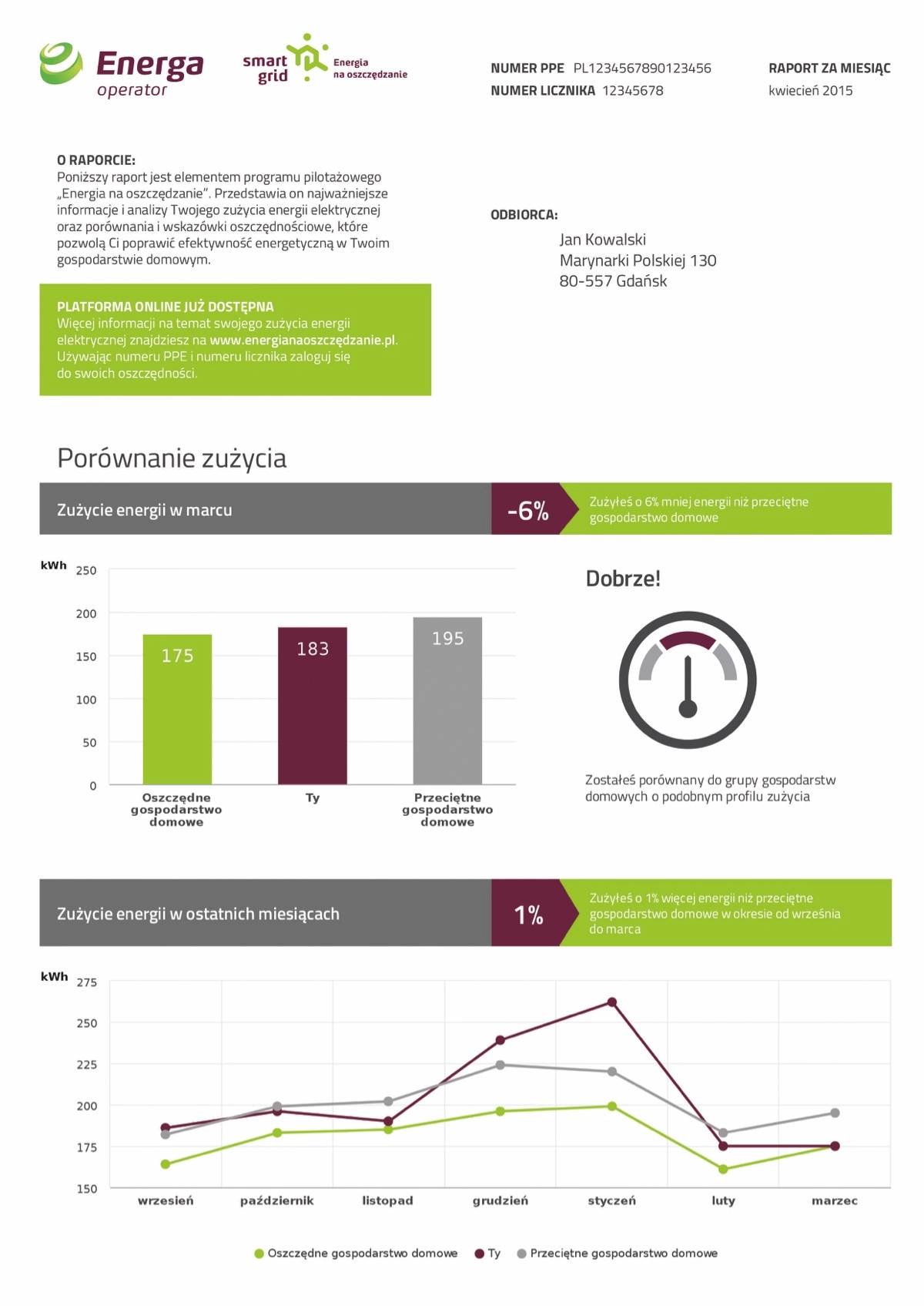 The energy report was delivered to consumers on a monthly basis by e-mail or via traditional post. The report contains visually clear and accessible power usage charts, as well as, comparison charts and saving tips.